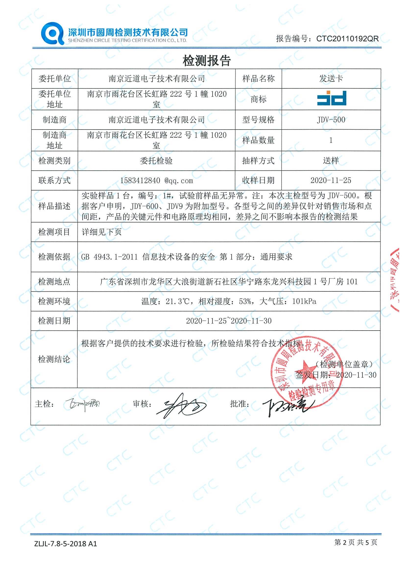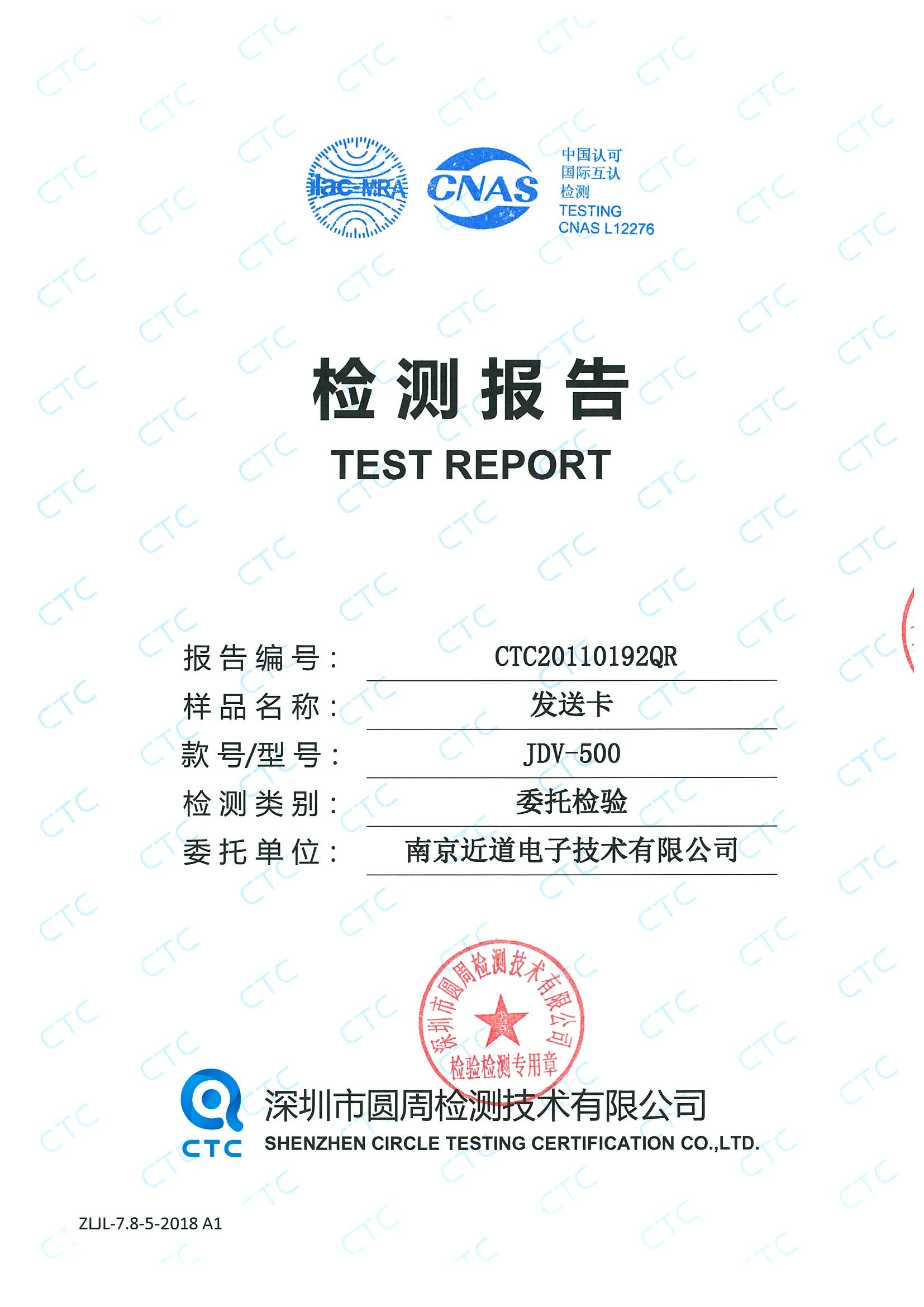 發(fā)送卡JDV-500檢測(cè)報(bào)告