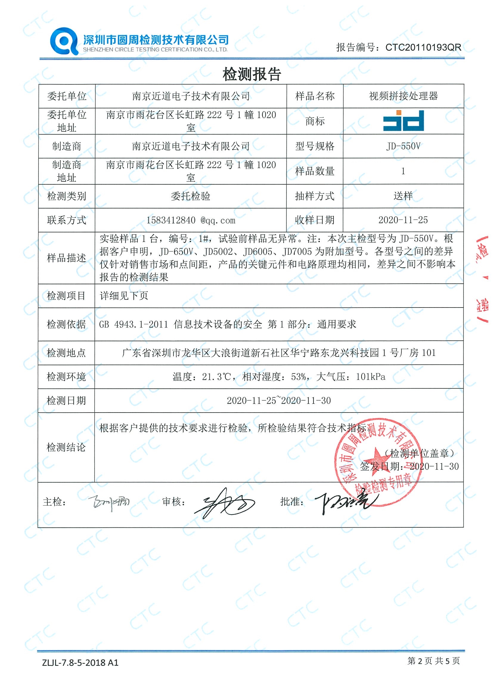 視頻拼接處理器JD-550V檢測(cè)報(bào)告